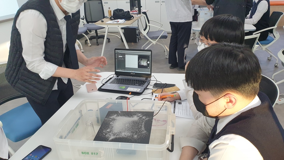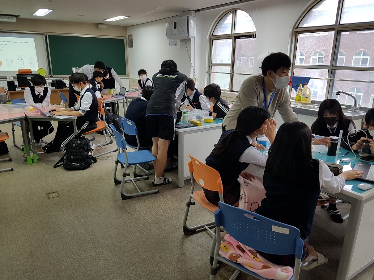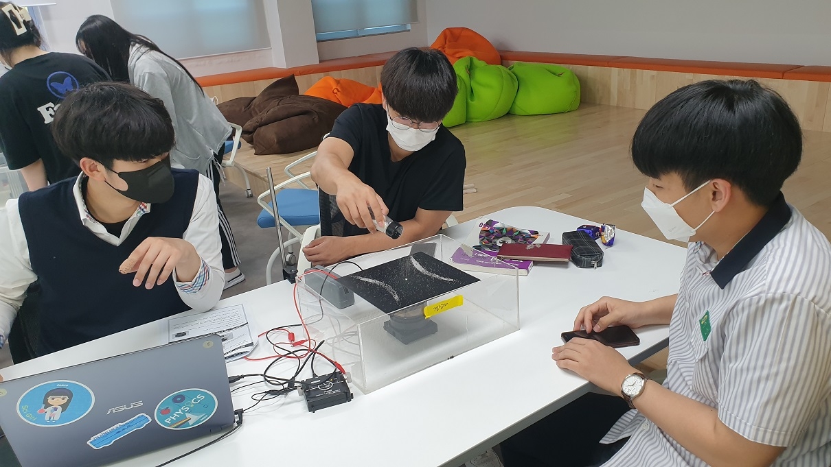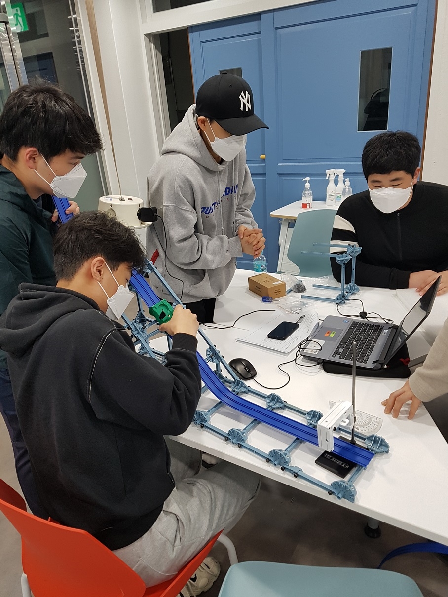 1. 일시: 2021.05.06.(목) 16:40~21:00 2021.05.13.(목) 16:40~21:00 2. 대상: 1학년 중 신청자, 2학년 과학중점반 전체 총 79명 3. 장소: 상상놀이터, 스마트러닝실, 액션러닝실 4. 주제 학년 | 주제 | 1학년 | <충격량> 충격량=운동량의 변화량 관계 확인 범퍼의 종류에 따른 충격력 비교 충격 완화 장치 제작 챌린지 | <효소의 작용> 과산화수소 분해 반응에서 카탈레이스 효소의 유무에 따른 반응 속도 비교 온도가 효소의 작용에 미치는 영향 확인 | 2학년 | <정상파> 양 끝이 고정된 줄에서 정상파를 형성 하는 고유 진동수 확인 고유 진동수에 영향을 미치는 요인이 무엇인지 탐구 2차원 금속판의 정상파 패턴 관찰 | <스키점프> 역학적에너지 보존과 포물선 운동에 대한 개념을 바탕으로 스포츠에 숨겨진 과학 원리를 탐구 |