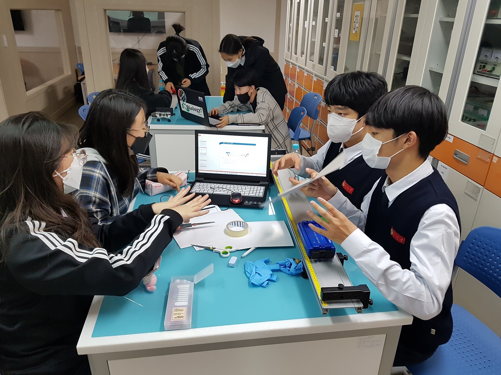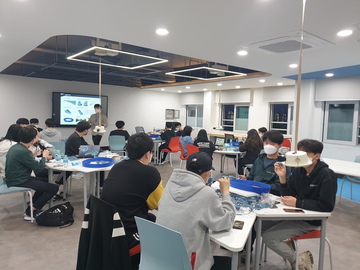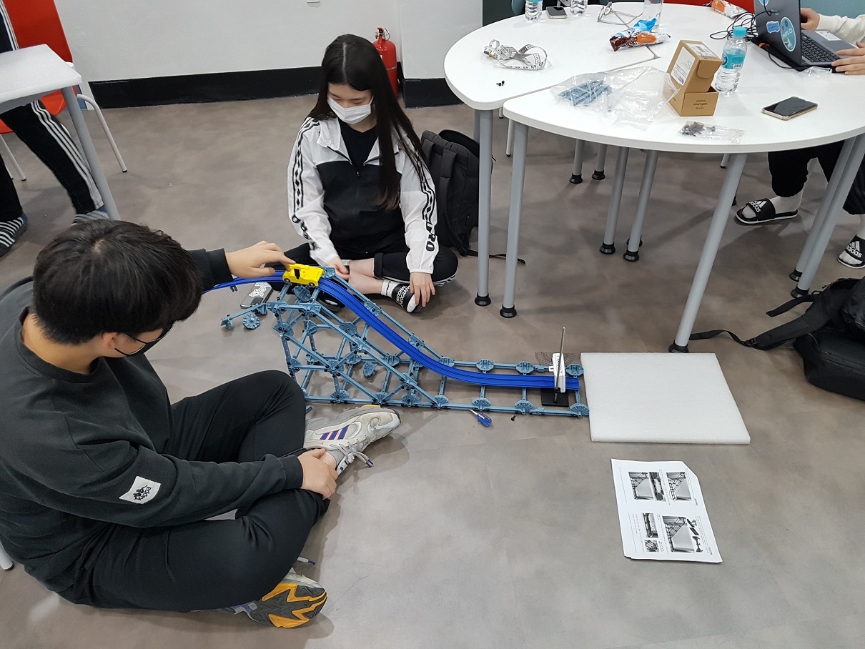 1. 일시: 2021.05.06.(목) 16:40~21:00 2021.05.13.(목) 16:40~21:00 2. 대상: 1학년 중 신청자, 2학년 과학중점반 전체 총 79명 3. 장소: 상상놀이터, 스마트러닝실, 액션러닝실 4. 주제 학년 | 주제 | 1학년 | <충격량> 충격량=운동량의 변화량 관계 확인 범퍼의 종류에 따른 충격력 비교 충격 완화 장치 제작 챌린지 | <효소의 작용> 과산화수소 분해 반응에서 카탈레이스 효소의 유무에 따른 반응 속도 비교 온도가 효소의 작용에 미치는 영향 확인 | 2학년 | <정상파> 양 끝이 고정된 줄에서 정상파를 형성 하는 고유 진동수 확인 고유 진동수에 영향을 미치는 요인이 무엇인지 탐구 2차원 금속판의 정상파 패턴 관찰 | <스키점프> 역학적에너지 보존과 포물선 운동에 대한 개념을 바탕으로 스포츠에 숨겨진 과학 원리를 탐구 |